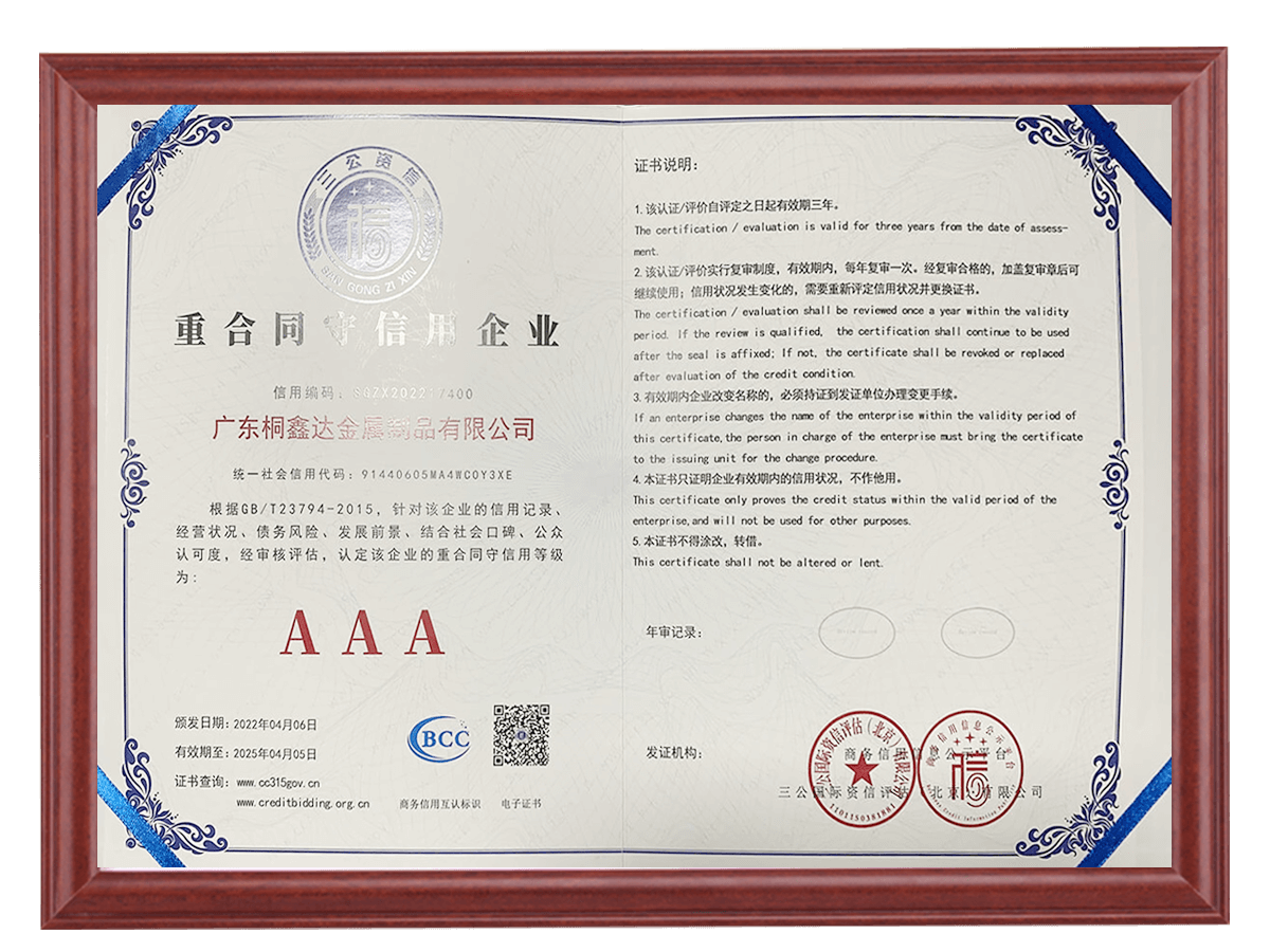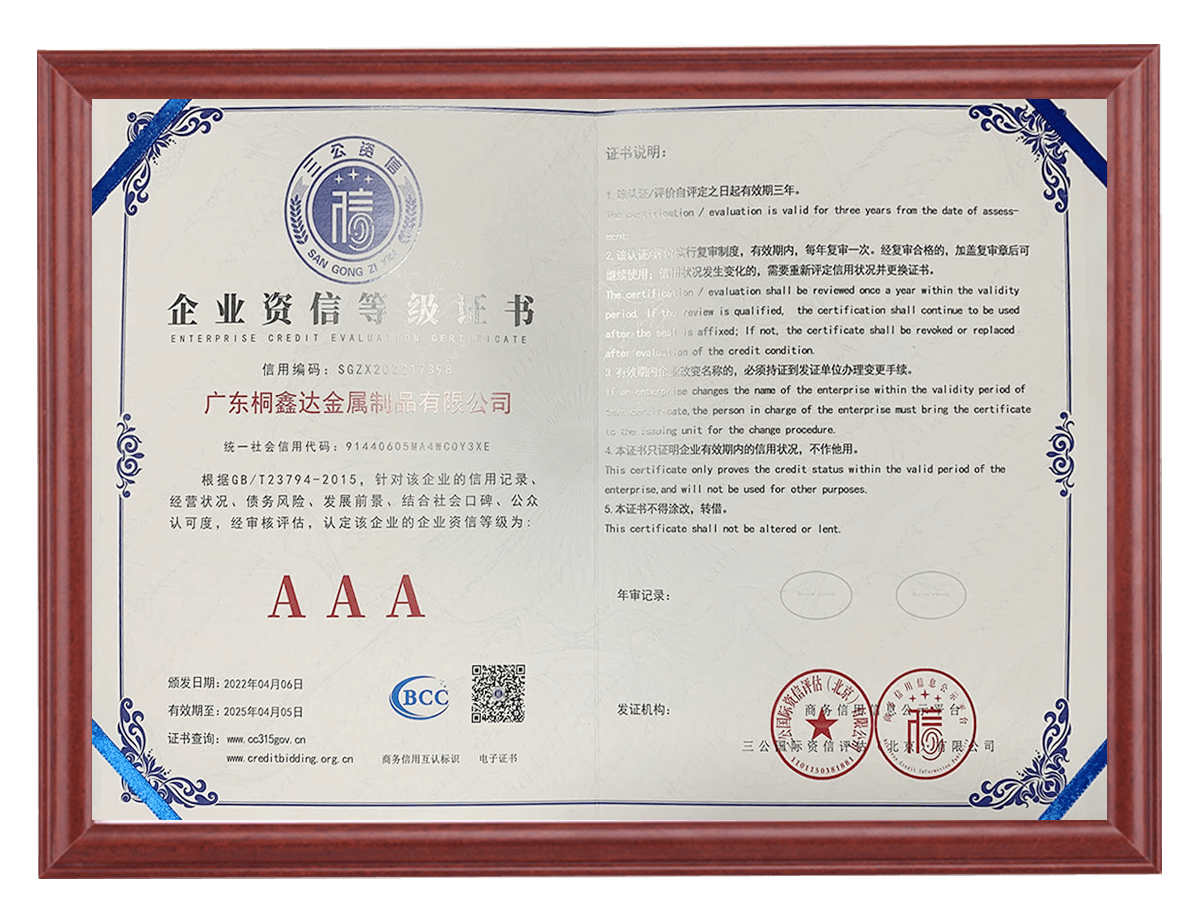 廣東桐鑫達(dá)金屬制品有限公司成立于2014年,是一家專注于高檔酒店/夜總會(huì)/高級(jí)場(chǎng)所金屬制品設(shè)計(jì)、生產(chǎn)及銷售安裝工程的企業(yè)。公司自成立以來,始終堅(jiān)持以“質(zhì)量求生存,誠(chéng)信求發(fā)展”為宗旨,不斷滿足客戶對(duì)高端品質(zhì)的需求,努力成為國(guó)內(nèi)行業(yè)的佼佼者。